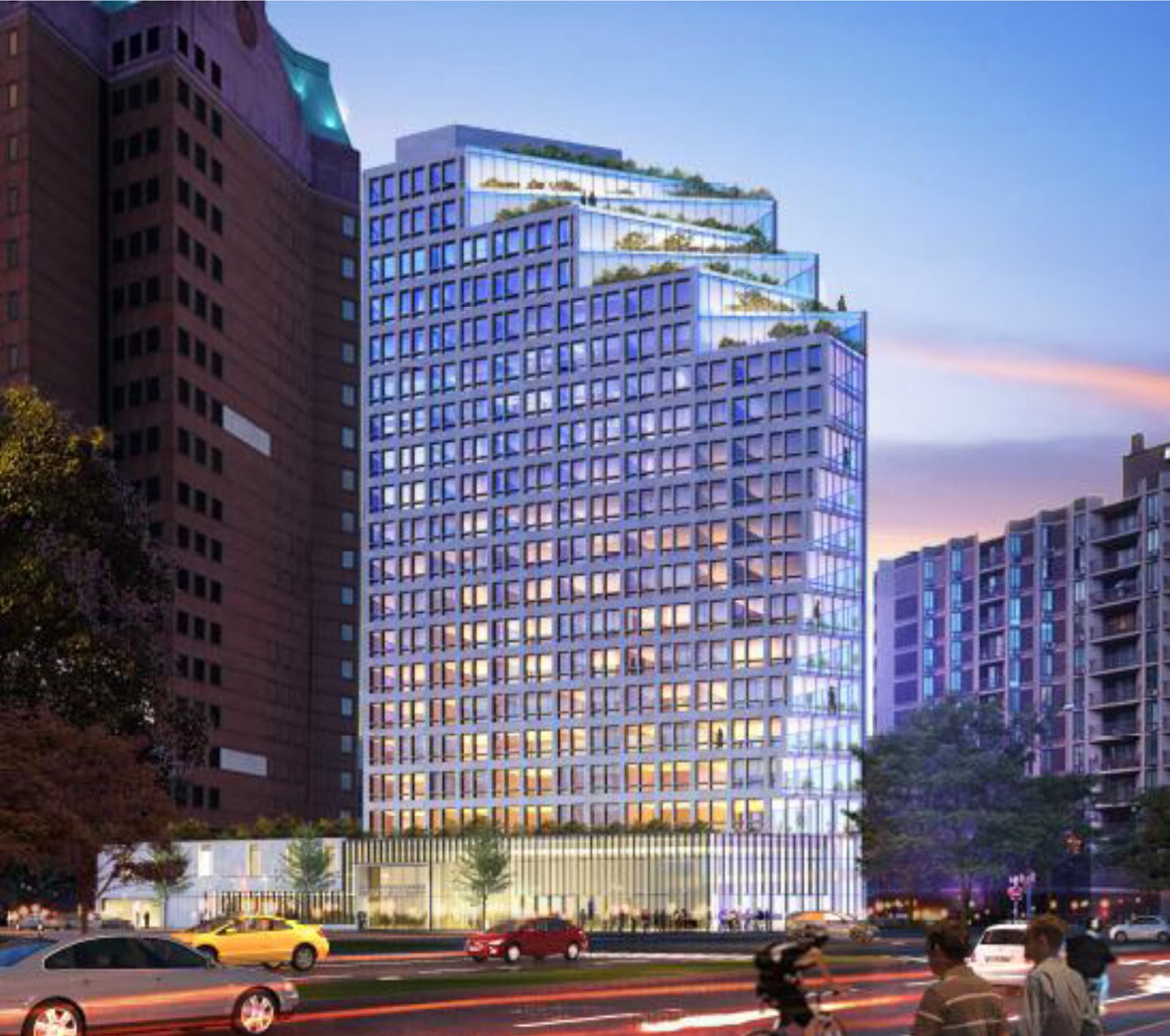 The real estate blog Curbed and other sites got access to a rendering that BPL is not releasing to the public as part of its website release of proposal information. Below, using that rendering, is what the taller building would look like in the wider landscape view you can see at the Curbed site: